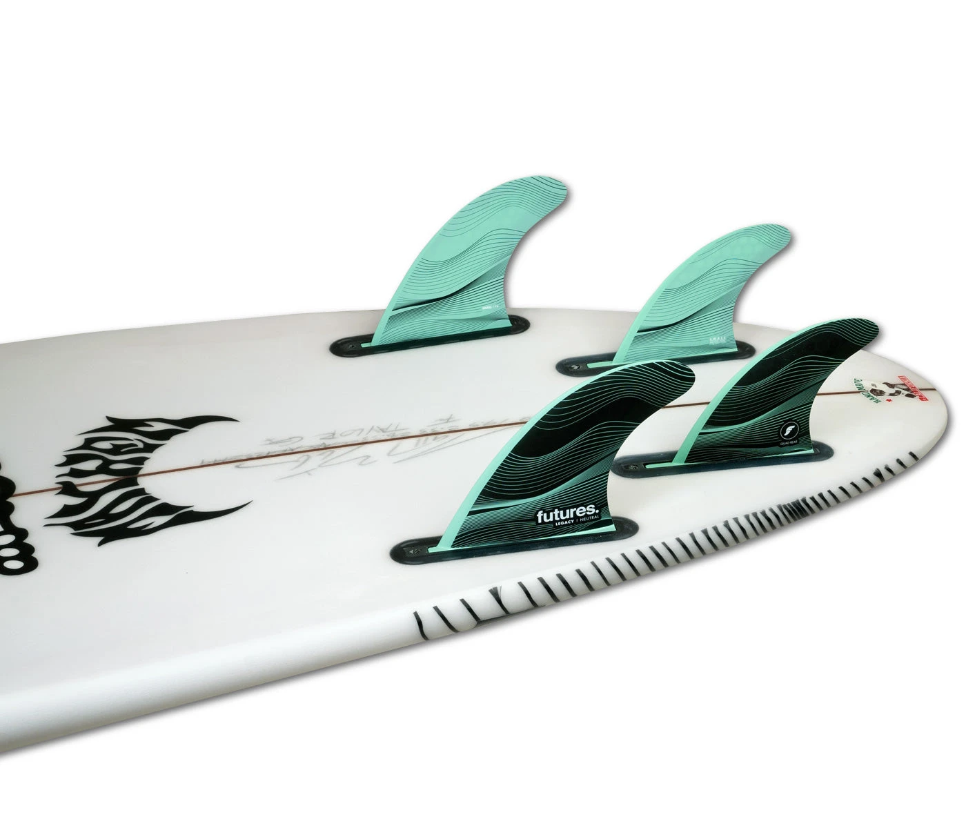 The F4 Legacy 5-fin is a small sized set in the Neutral template category. The Honeycomb construction gives a balanced feel for all-around performance. The rear fins are the QD2 3.75 with Symmetrical foil. The 5-fin set is designed to be ridden as either a Thruster or Quad set-up, packaged together for more versatility through your quiver.