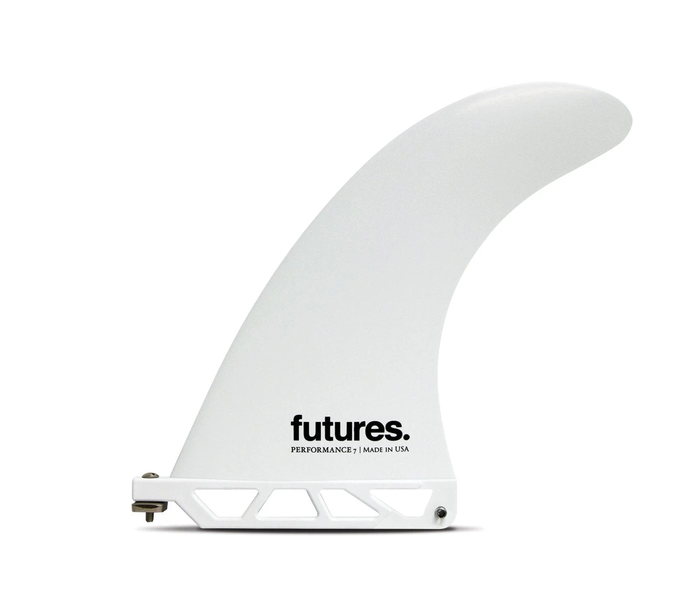 The Performance 7โ Thermotech, utilizes an all-around template shape and can be used as a stand-alone center fin, or combined with side bites to be used as a 2 +1. Made in Huntington Beach, Thermotech fins do not have the traditional plastic feel of a composite fin. Instead, they have a consistent flex that creates drive and release through turns. Thermotech fins come with the Futures Truss Base, making them lighter and stronger