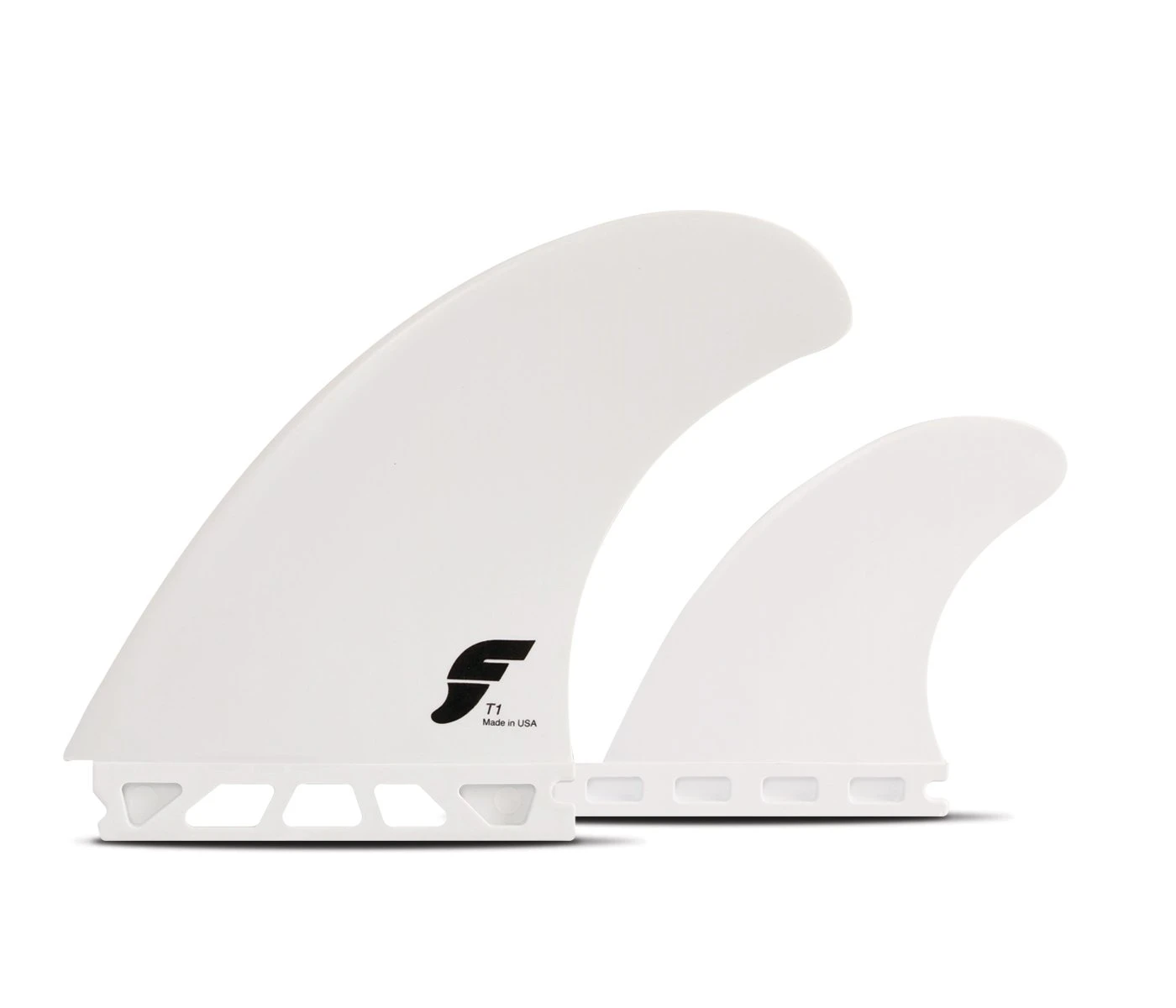 The T1 Thermotech Twin +1 is Future’s performance twin-fin designed for the type of small wave, in the pocket surfing that modern twin-fins are becoming known for. Made in Huntington Beach, the Thermotech product line does not have the traditional plastic feel of a composite fin. Instead, they have a consistent flex that creates drive and release through turns. Thermotech fins come with the Futures Truss Base, making them lighter and stronger. The set is equipped with the option to ride with a small trailer fin for increased stability creating more of a thruster feel.